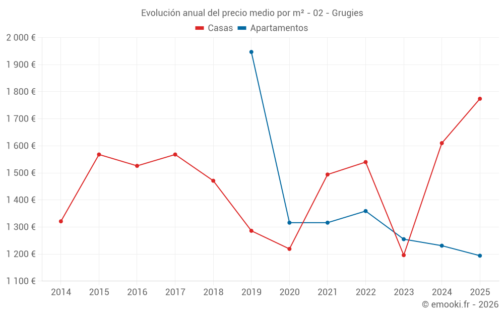¿Cuál es el precio por m2 de las casas en Grugies?