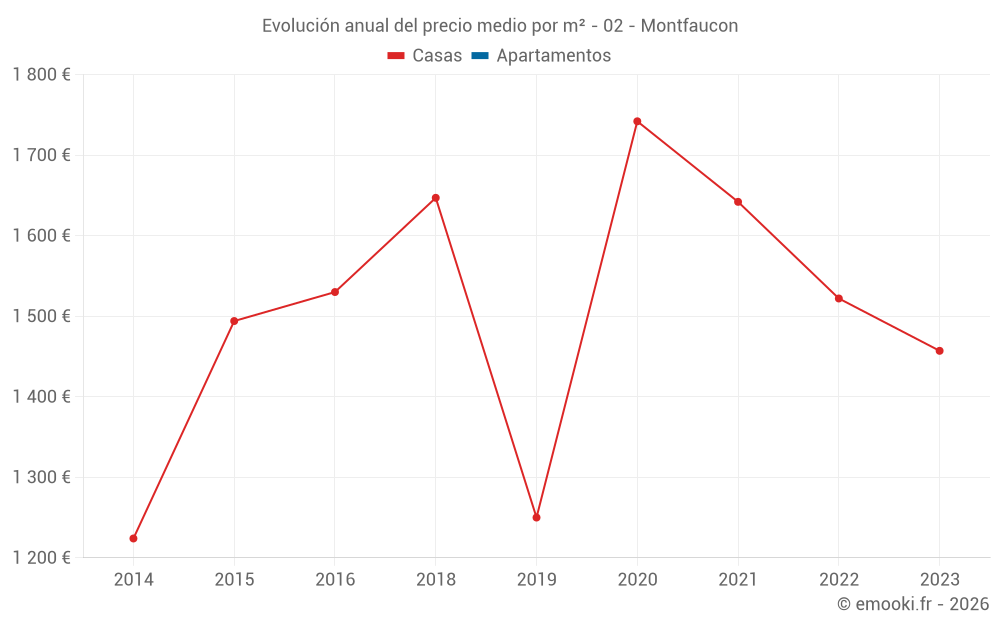 Evolución del precio medio por m² de las casas