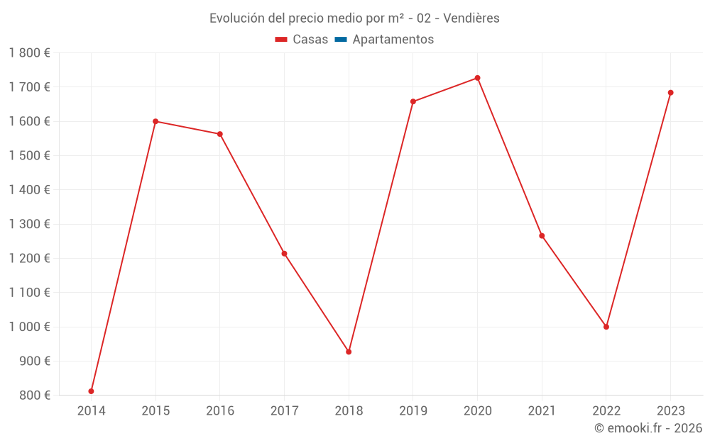 Mapa de precios de la vivienda en la comuna de Vendières, elija una sección para ver las transacciones por parcela.