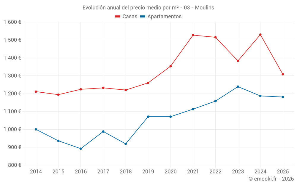 ¿Cuál es el precio por m2 de las casas en Moulins?