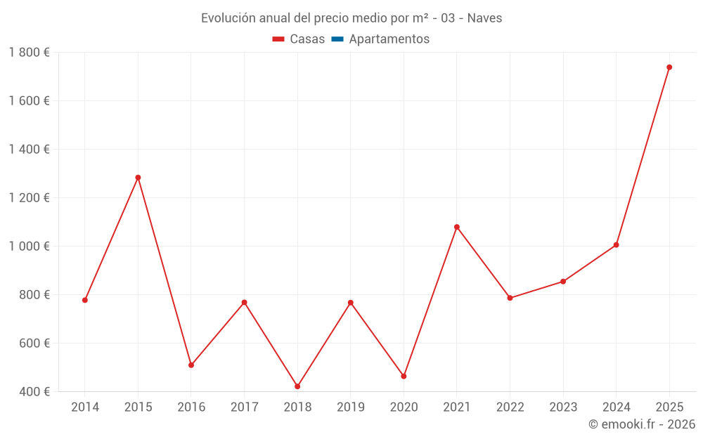 Evolución del precio medio por m² de las casas