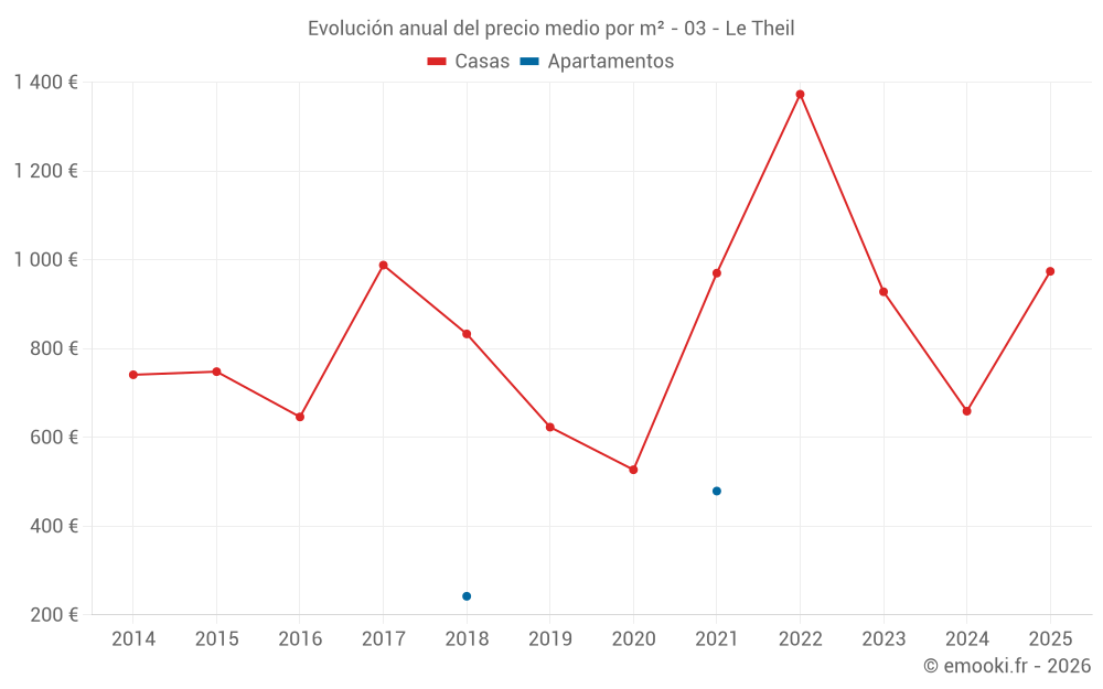 El precio mediano en las 17 transacciones de casas de los últimos 24 meses en la comuna de Le Theil fue de 786 € por metro cuadrado para un valor patrimonial medio de 55 000 €. Durante este período el 60% de las transacciones estuvieron entre 591 y 1 142 € por metro cuadrado (del 2º al 8º decil).