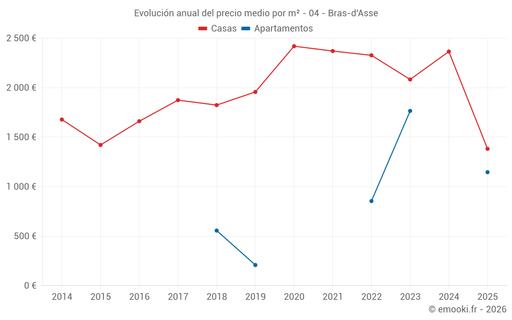 ¿Cuál es el precio por m2 de las casas en Bras-d'Asse?