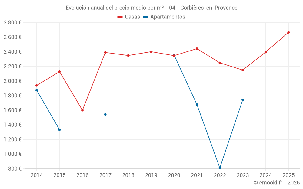 ¿Cuál es el precio por m2 de las casas en Corbières-en-Provence?