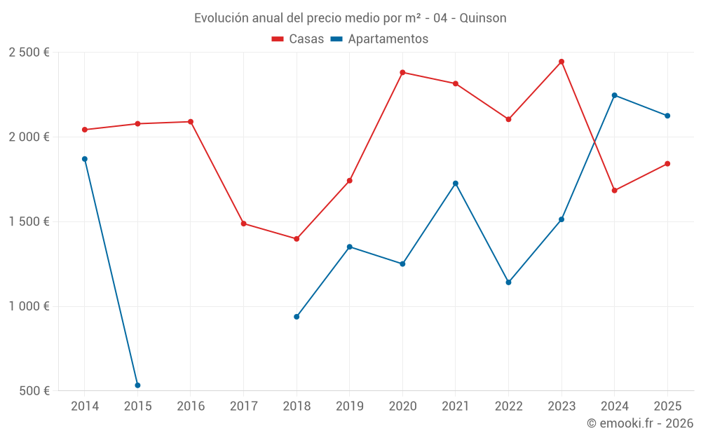 ¿Cuál es el precio por m2 de las casas en Quinson?