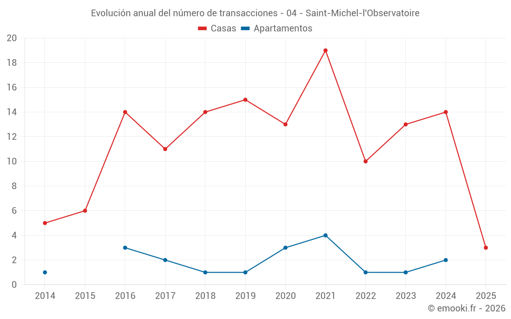 El precio mediano en las 24 transacciones de casas de los últimos 24 meses en la comuna de Saint-Michel-l'Observatoire fue de 2 832 € por metro cuadrado para un valor patrimonial medio de 239 255 €. Durante este período el 60% de las transacciones estuvieron entre 1 831 y 3 715 € por metro cuadrado (del 2º al 8º decil).