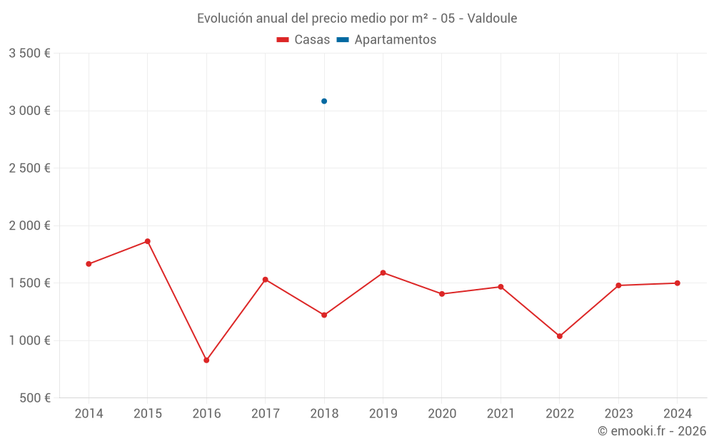 Evolución del precio medio por m² de las casas
