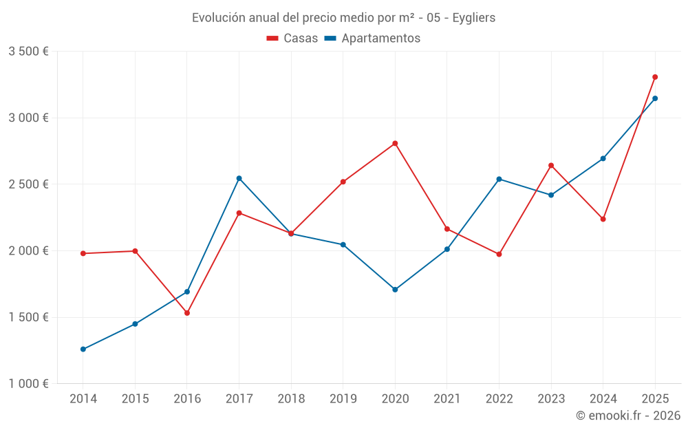 ¿Cuál es el precio por m2 de los apartamentos en Eygliers?