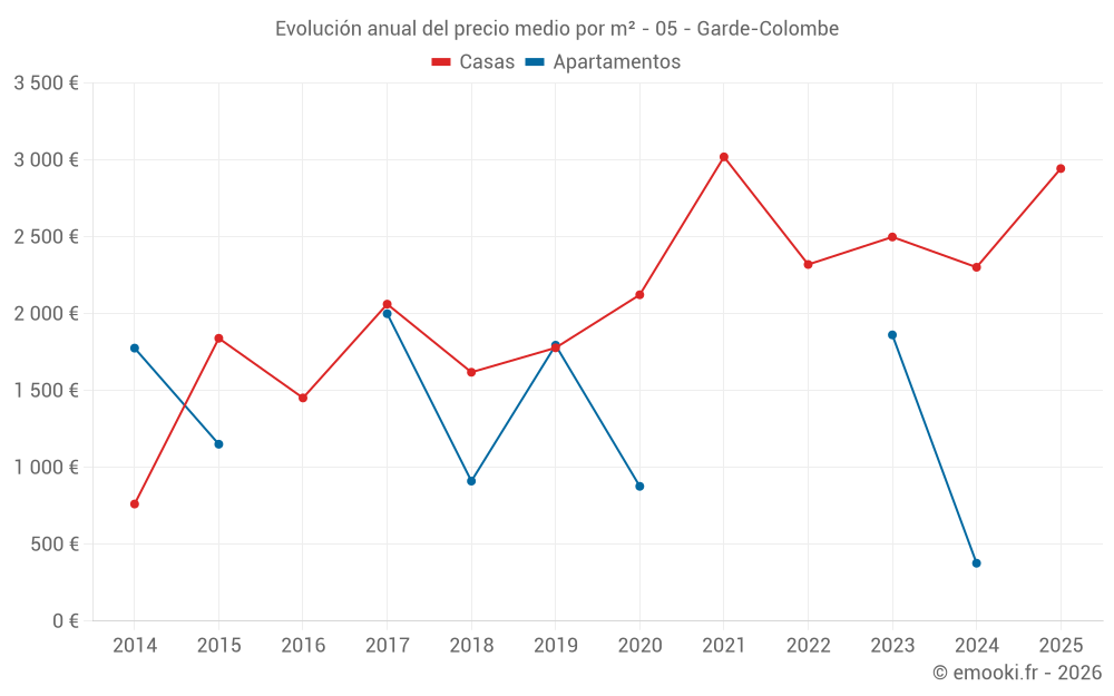 Evolución del precio medio por m² de las casas