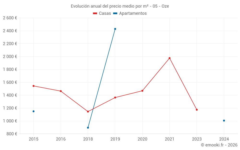 Mapa de precios de la vivienda en la comuna de Oze, elija una sección para ver las transacciones por parcela.