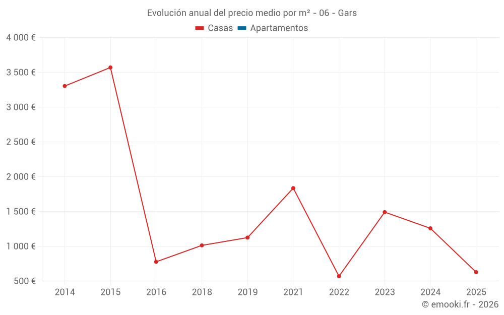 Evolución del precio medio por m² de las casas