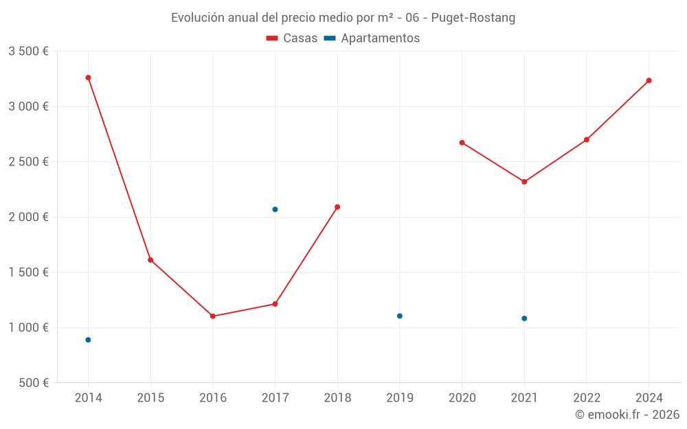 Evolución del precio medio por m² de los apartamentos