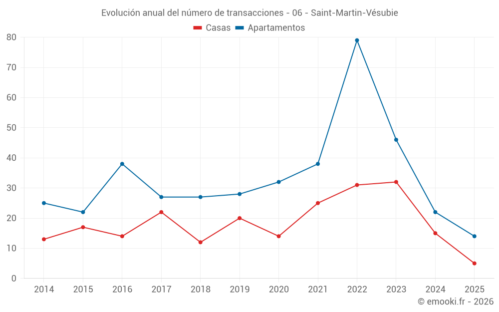 El precio mediano en las 24 transacciones de apartamentos de los últimos 12 meses en la comuna de Saint-Martin-Vésubie fue de 2 710 € por metro cuadrado para un valor patrimonial medio de 85 500 €. Durante este período el 60% de las transacciones estuvieron entre 1 703 y 3 268 € por metro cuadrado (del 2º al 8º decil).