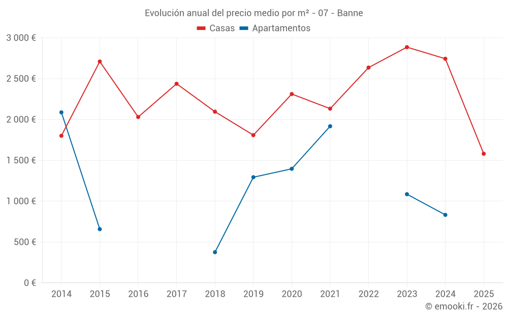 Evolución del precio medio por m² de las casas