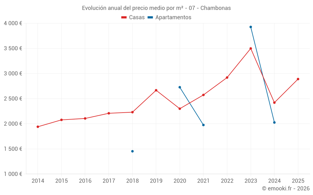 ¿Cuál es el precio por m2 de las casas en Chambonas?