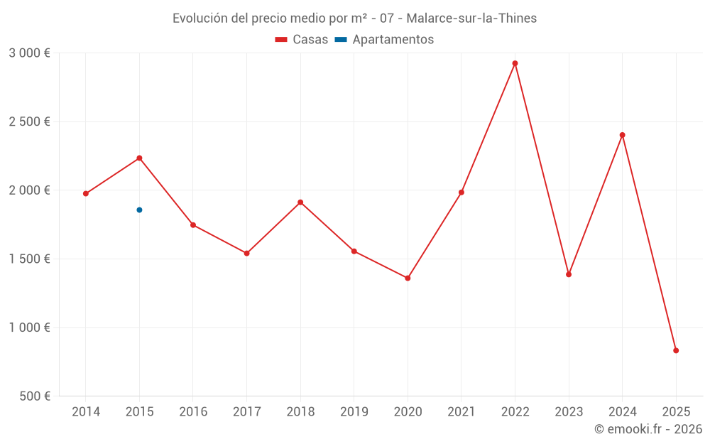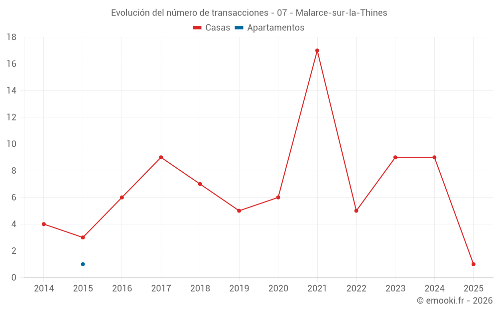 Mapa de precios de la vivienda en la comuna de Malarce-sur-la-Thines, elija una sección para ver las transacciones por parcela.