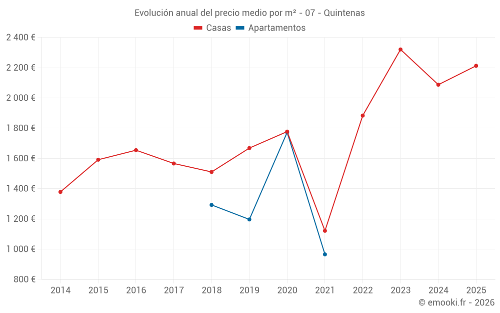 ¿Cuál es el precio por m2 de las casas en Quintenas?
