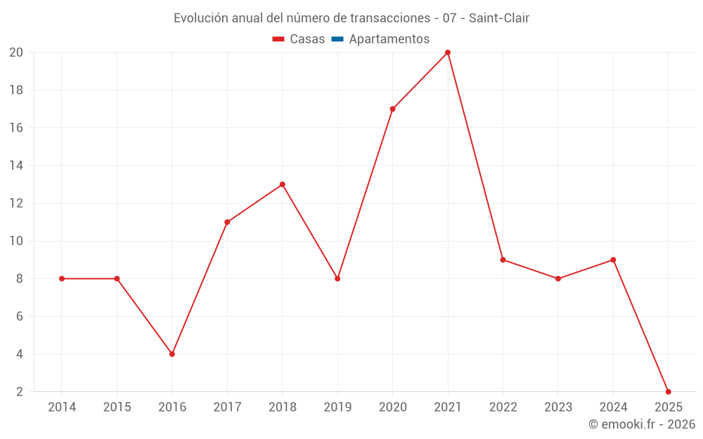 El precio mediano en las 17 transacciones de casas de los últimos 24 meses en la comuna de Saint-Clair fue de 2 483 € por metro cuadrado para un valor patrimonial medio de 274 000 €. Durante este período el 60% de las transacciones estuvieron entre 2 000 y 2 979 € por metro cuadrado (del 2º al 8º decil).