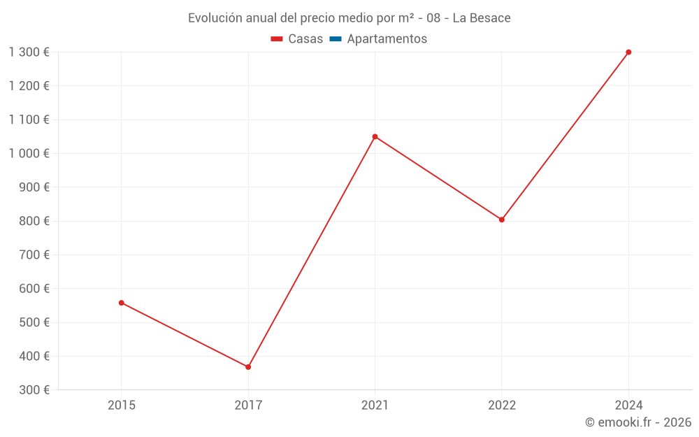 Evolución del precio medio por m² de los apartamentos