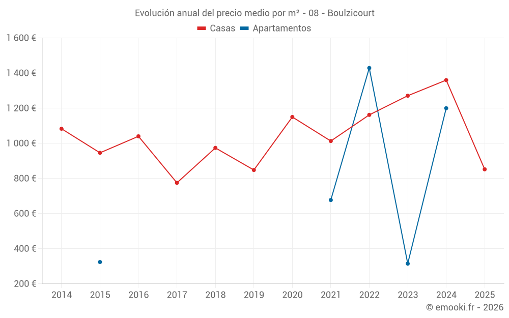 ¿Cuál es el precio por m2 de las casas en Boulzicourt?