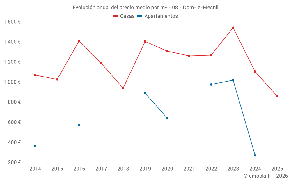 ¿Cuál es el precio por m2 de las casas en Dom-le-Mesnil?