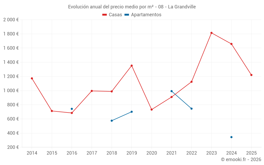 El precio mediano en las 20 transacciones de casas de los últimos 24 meses en la comuna de La Grandville fue de 1 608 € por metro cuadrado para un valor patrimonial medio de 145 875 €. Durante este período el 60% de las transacciones estuvieron entre 1 126 y 1 954 € por metro cuadrado (del 2º al 8º decil).