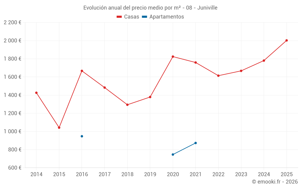 ¿Cuál es el precio por m2 de las casas en Juniville?