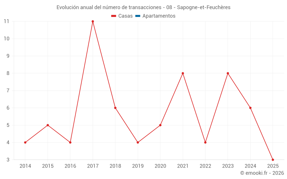 El precio mediano en las 14 transacciones de casas de los últimos 24 meses en la comuna de Sapogne-et-Feuchères fue de 881 € por metro cuadrado para un valor patrimonial medio de 105 000 €. Durante este período el 60% de las transacciones estuvieron entre 371 y 1 673 € por metro cuadrado (del 2º al 8º decil).