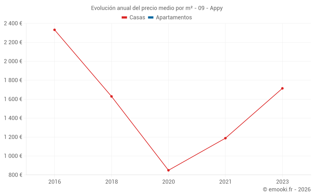Evolución del precio medio por m² de los apartamentos