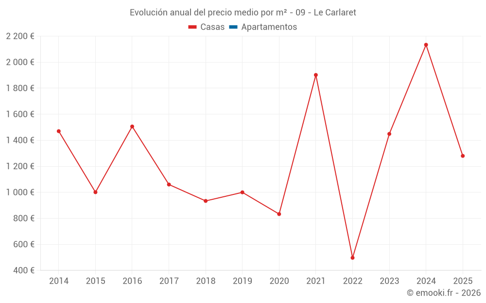 Evolución del precio medio por m² de las casas