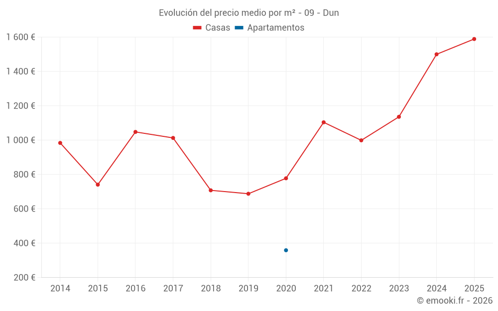 Mapa de precios de la vivienda en la comuna de Dun, elija una sección para ver las transacciones por parcela.