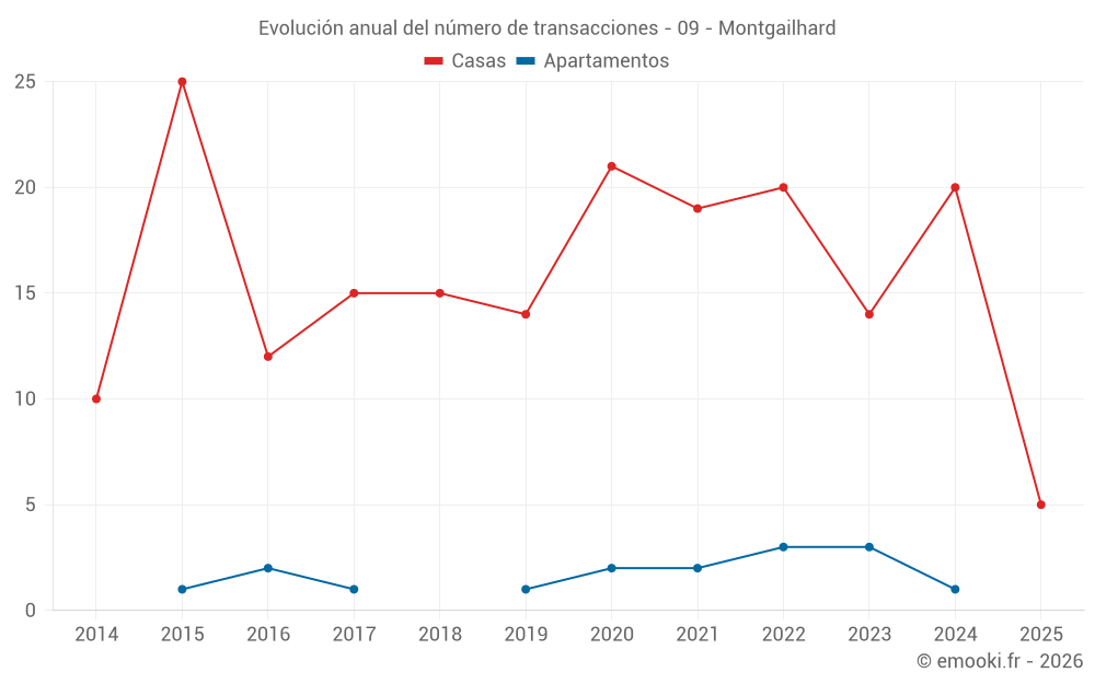 El precio mediano en las 16 transacciones de casas de los últimos 12 meses en la comuna de Montgailhard fue de 1 905 € por metro cuadrado para un valor patrimonial medio de 157 500 €. Durante este período el 60% de las transacciones estuvieron entre 1 195 y 2 787 € por metro cuadrado (del 2º al 8º decil).