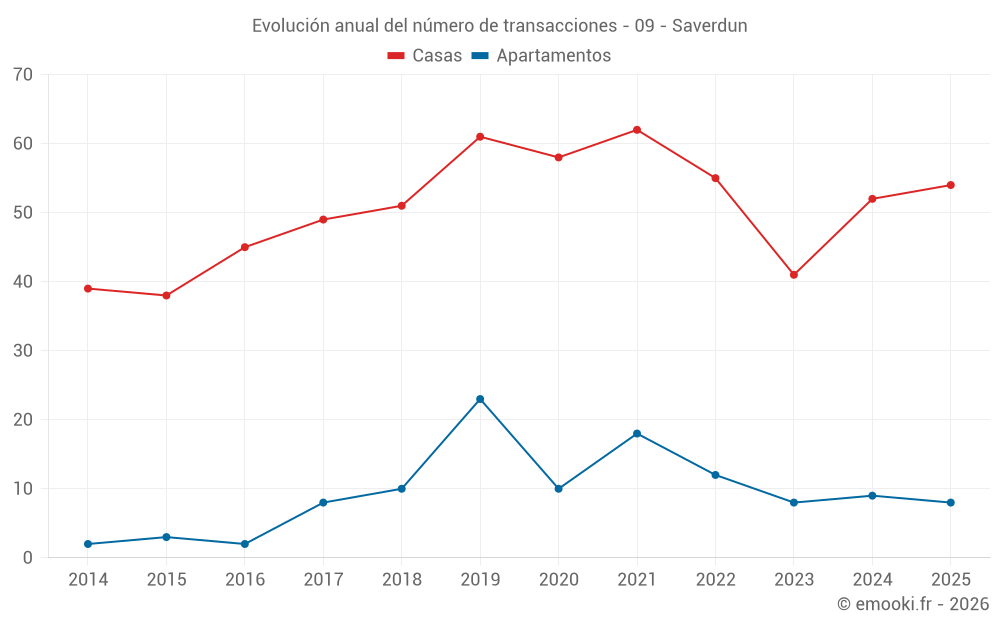 El precio mediano en las 31 transacciones de casas de los últimos 6 meses en la comuna de Saverdun fue de 1 573 € por metro cuadrado para un valor patrimonial medio de 150 000 €. Durante este período el 60% de las transacciones estuvieron entre 1 182 y 2 055 € por metro cuadrado (del 2º al 8º decil).