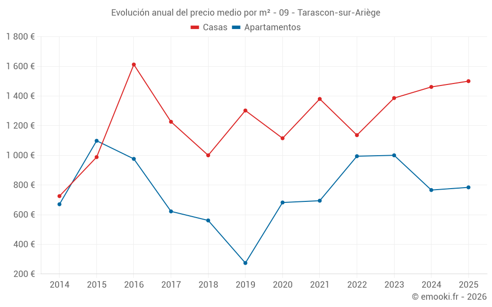 ¿Cuál es el precio por m2 de las casas en Tarascon-sur-Ariège?