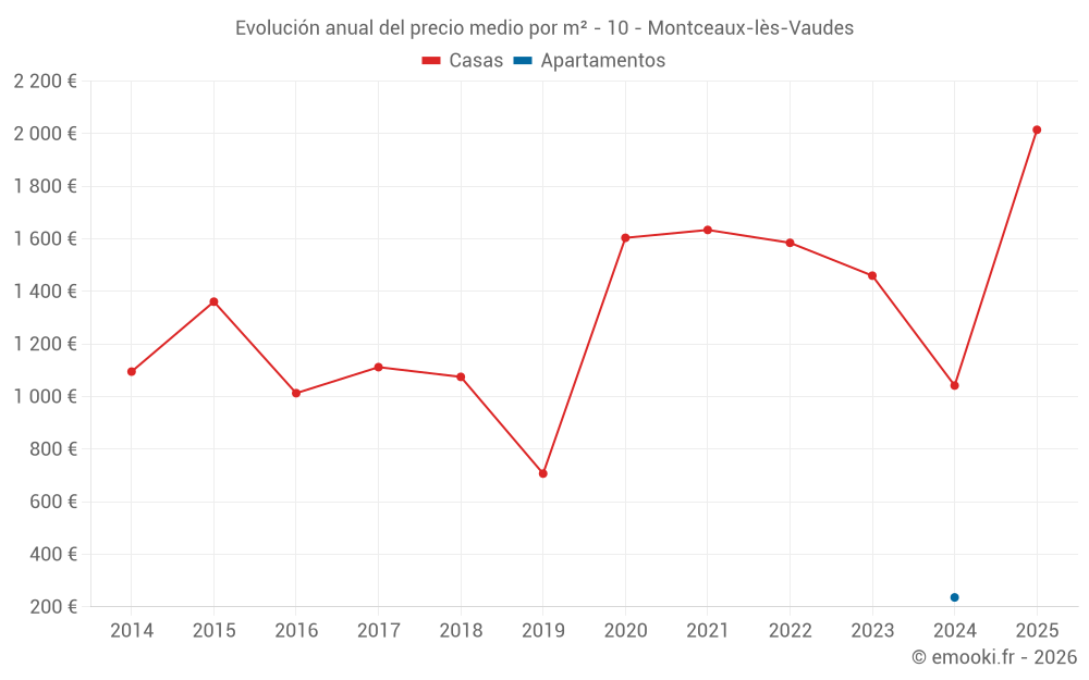 Evolución del precio medio por m² de las casas
