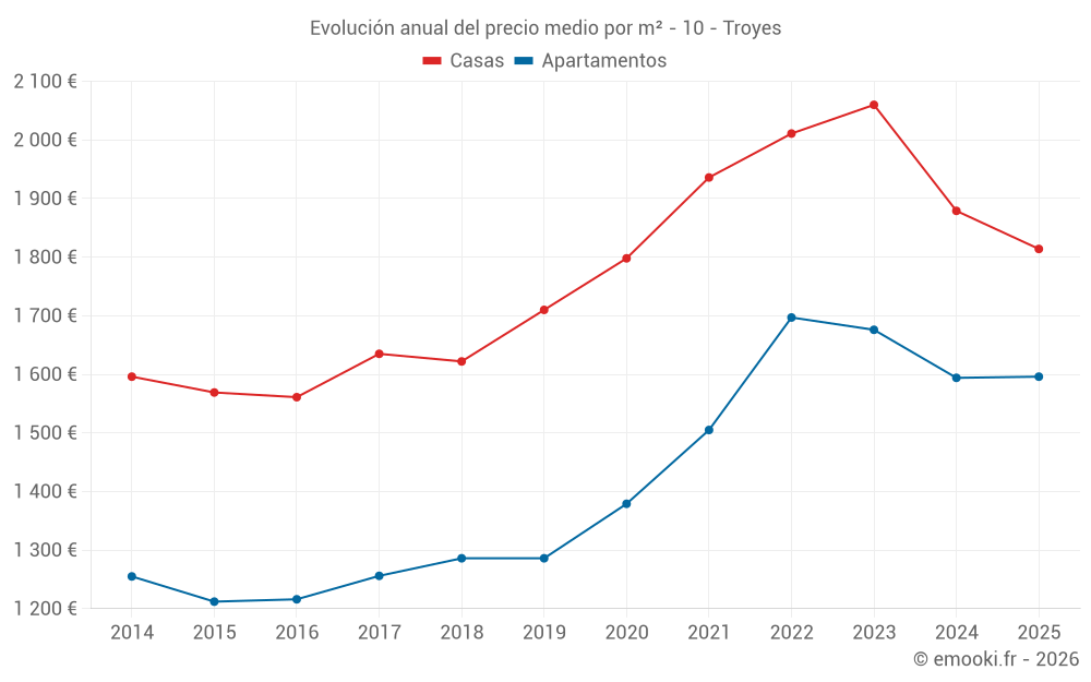 ¿Cuál es el precio por m2 de las casas en Troyes?