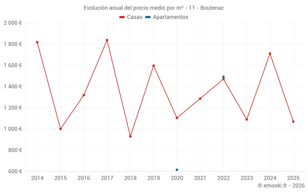 ¿Cuál es el precio por m2 de las casas en Boutenac?