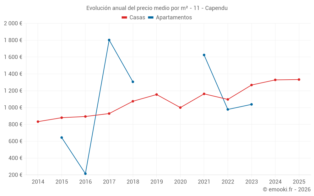 ¿Cuál es el precio por m2 de las casas en Capendu?