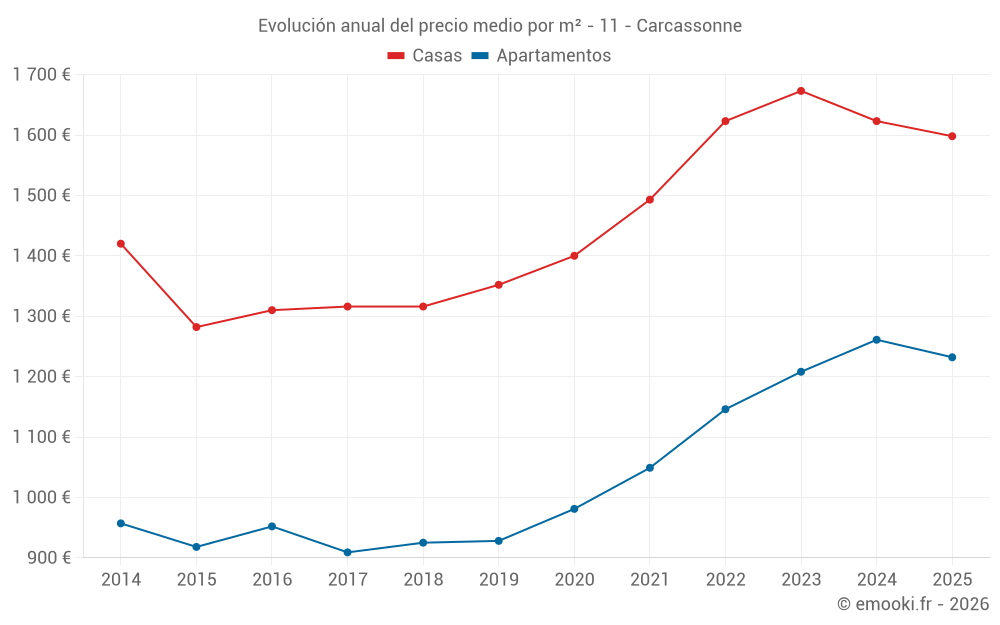 ¿Cuál es el precio por m2 de las casas en Carcassonne?
