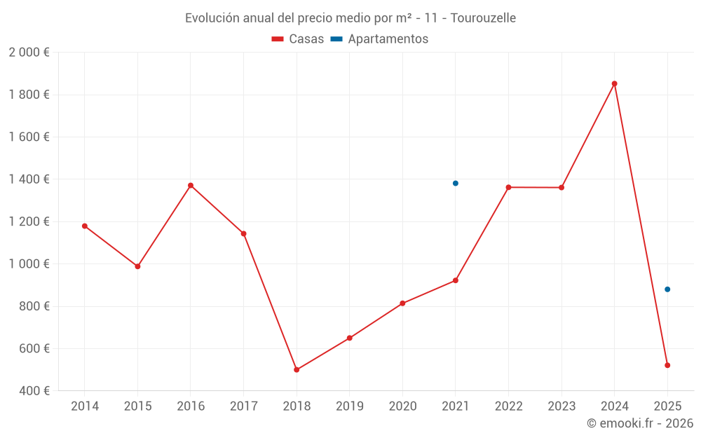 ¿Cuál es el precio por m2 de las casas en Tourouzelle?