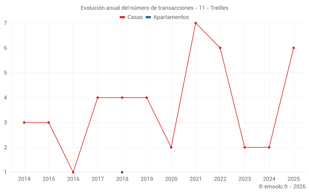 Mapa de precios de la vivienda en la comuna de Treilles, elija una sección para ver las transacciones por parcela.