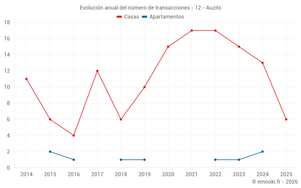 El precio mediano en las 26 transacciones de casas de los últimos 24 meses en la comuna de Auzits fue de 948 € por metro cuadrado para un valor patrimonial medio de 83 650 €. Durante este período el 60% de las transacciones estuvieron entre 557 y 1 738 € por metro cuadrado (del 2º al 8º decil).