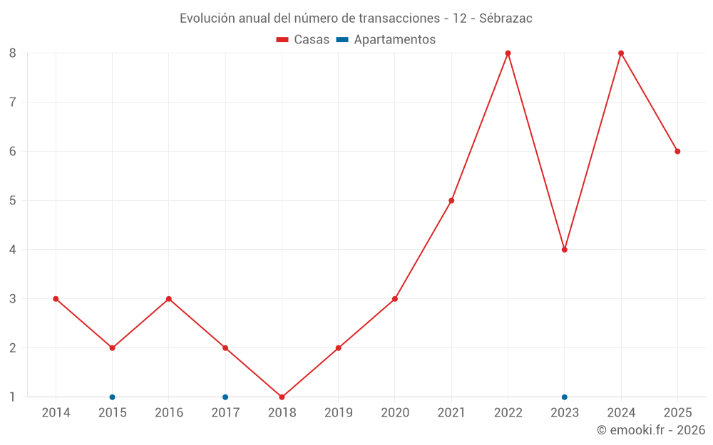 El precio mediano en las 16 transacciones de casas de los últimos 24 meses en la comuna de Sébrazac fue de 1 292 € por metro cuadrado para un valor patrimonial medio de 117 500 €. Durante este período el 60% de las transacciones estuvieron entre 769 y 1 905 € por metro cuadrado (del 2º al 8º decil).