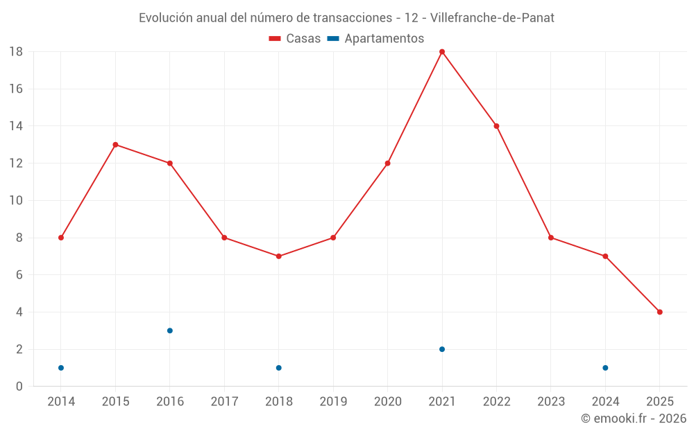 El precio mediano en las 15 transacciones de casas de los últimos 24 meses en la comuna de Villefranche-de-Panat fue de 950 € por metro cuadrado para un valor patrimonial medio de 109 250 €. Durante este período el 60% de las transacciones estuvieron entre 636 y 1 343 € por metro cuadrado (del 2º al 8º decil).