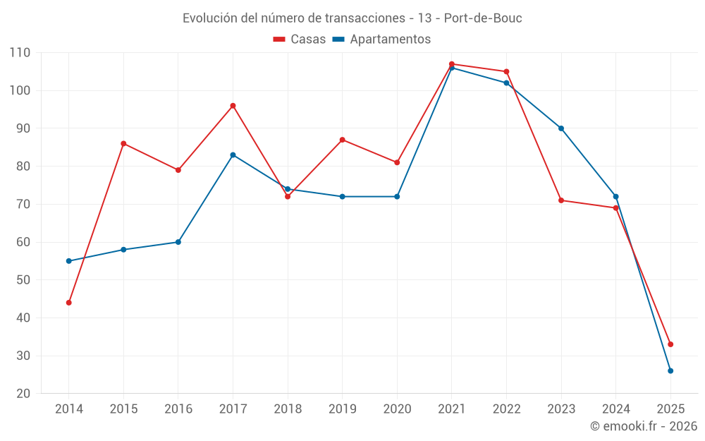 El precio mediano en las 26 transacciones de apartamentos de los últimos 6 meses en la comuna de Port-de-Bouc fue de 1 838 € por metro cuadrado para un valor patrimonial medio de 144 500 €. Durante este período el 60% de las transacciones estuvieron entre 1 550 y 3 000 € por metro cuadrado (del 2º al 8º decil).