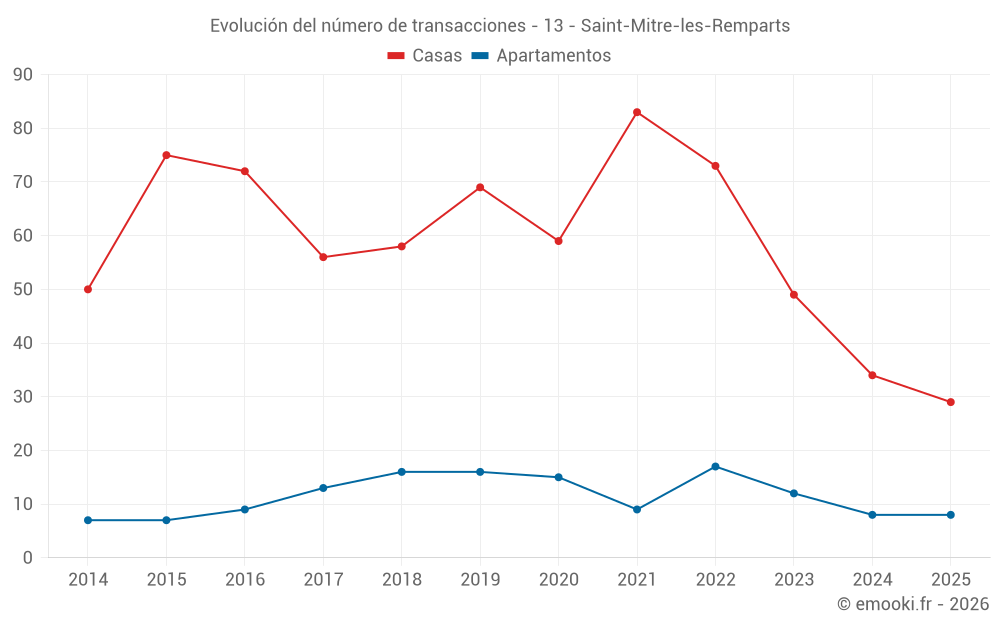 Mapa de precios de la vivienda en la comuna de Saint-Mitre-les-Remparts, elija una sección para ver las transacciones por parcela.