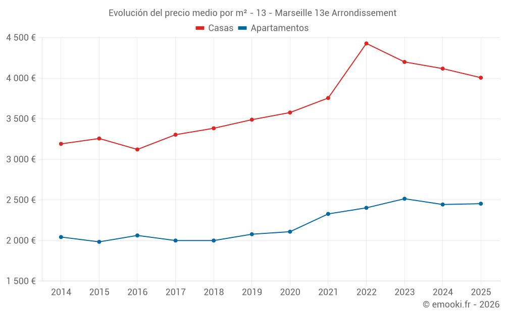 Mapa de precios de la vivienda en la comuna de Marseille 13e Arrondissement, elija una sección para ver las transacciones por parcela.