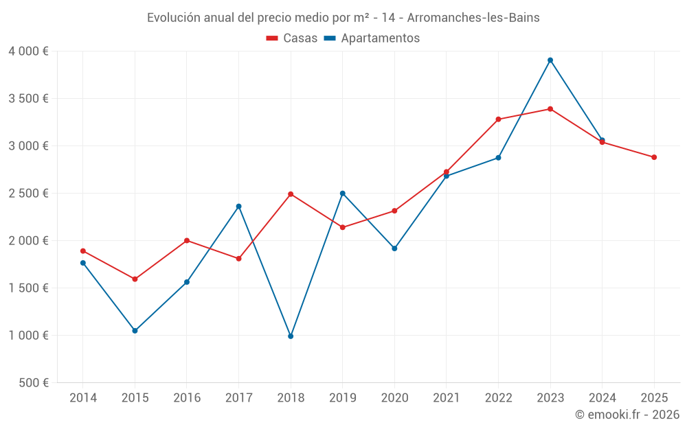 Mapa de precios de la vivienda en la comuna de Arromanches-les-Bains, elija una sección para ver las transacciones por parcela.