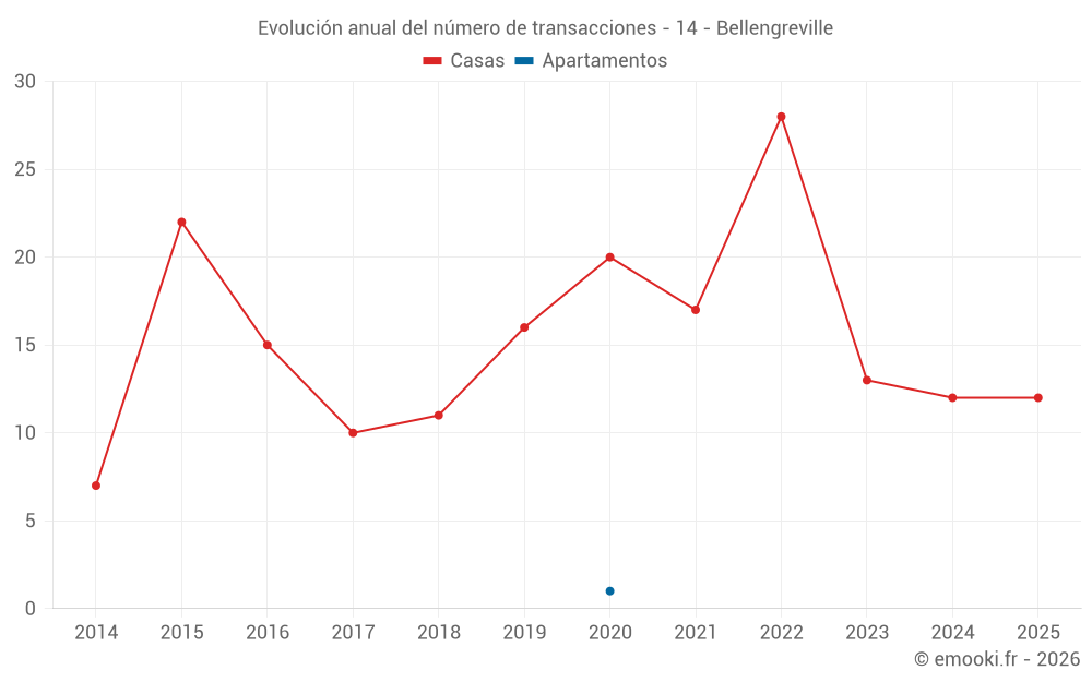 El precio mediano en las 23 transacciones de casas de los últimos 12 meses en la comuna de Bellengreville fue de 2 418 € por metro cuadrado para un valor patrimonial medio de 210 400 €. Durante este período el 60% de las transacciones estuvieron entre 1 963 y 2 856 € por metro cuadrado (del 2º al 8º decil).