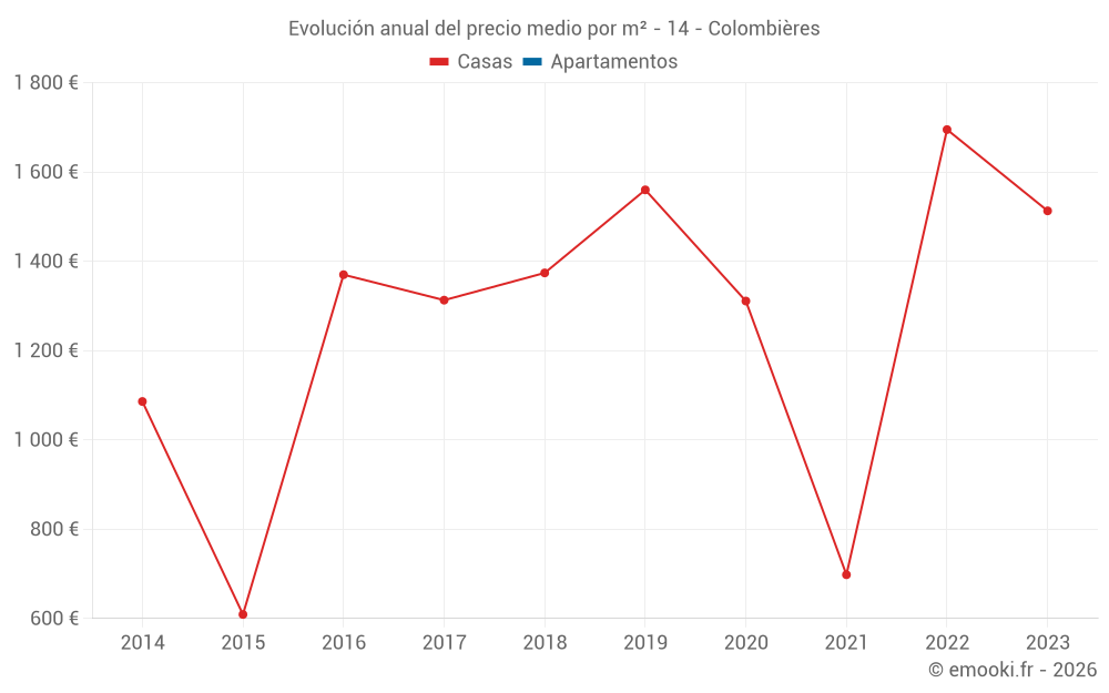 Evolución del precio medio por m² de los apartamentos
